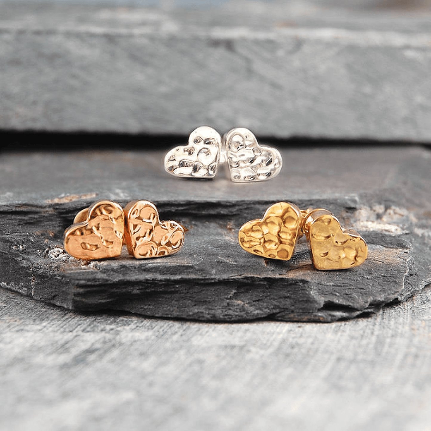 Available in 18kt Rose and Gold plated silver finishes as well as Sterling Silver, and in polished ot hammered finishes, they're perfectly sized for everyday wear.