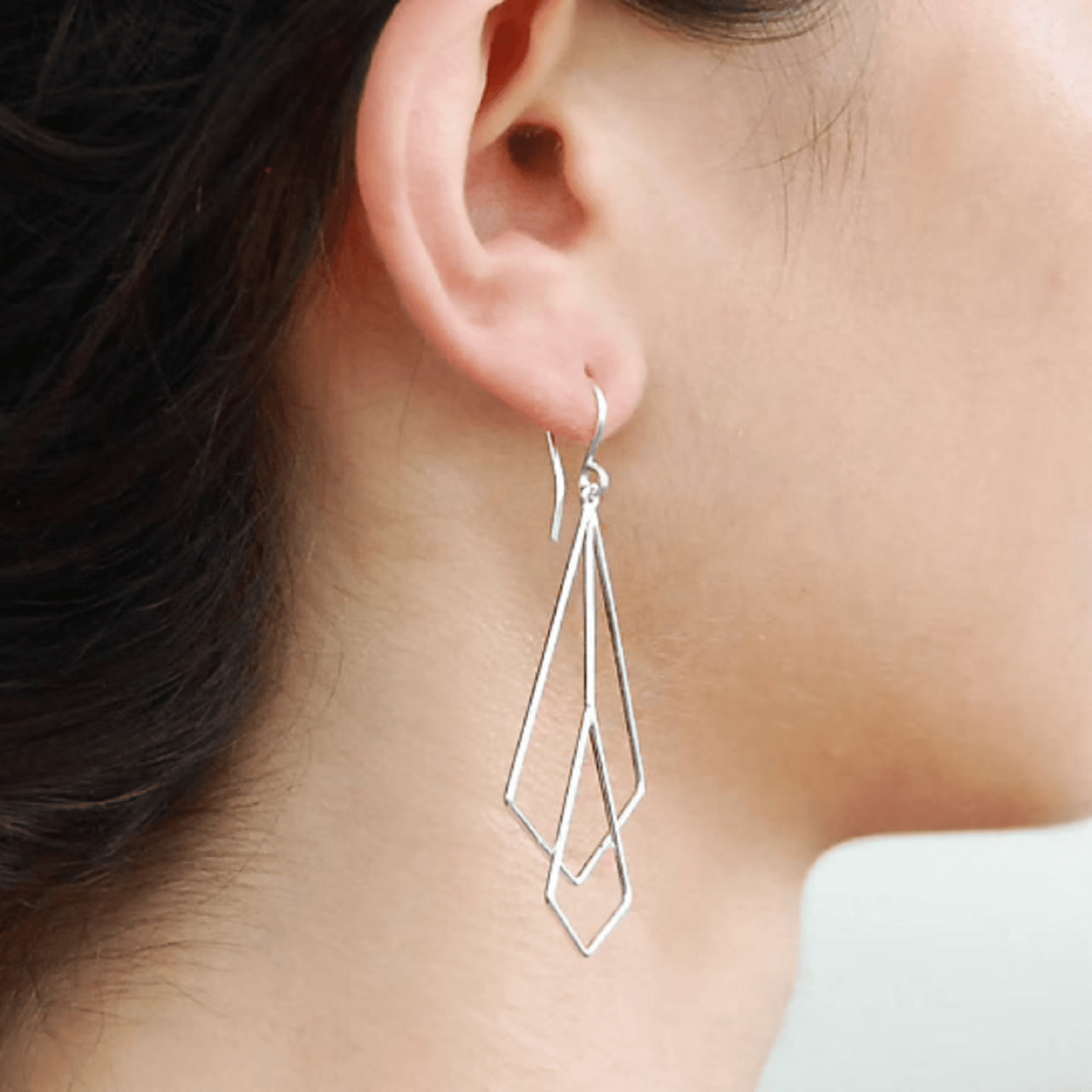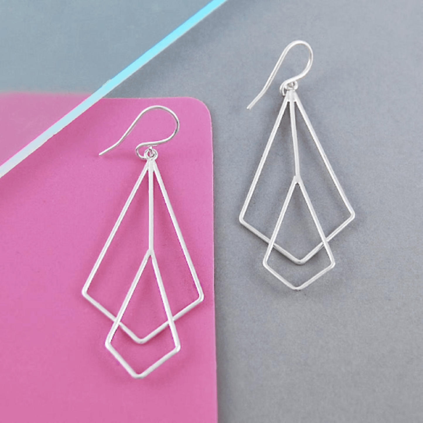 A 1920s design with a geometric twist, these gorgeous statement Art Deco Chevron Dangle Earrings are hand-crafted from sterling silver wire for a cool and contemporary look, and plated in our UK workshop.