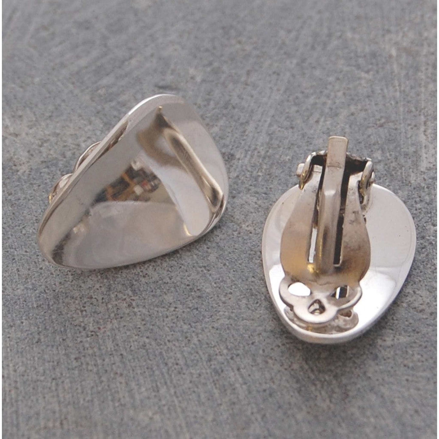 Classic understated elegance defines these beautifully hand-crafted Petal Gold Clip On Earrings Two shimmering petals of eighteen-carat gold plated silver are highly polished giving a luxuriant, light reflecting effect.