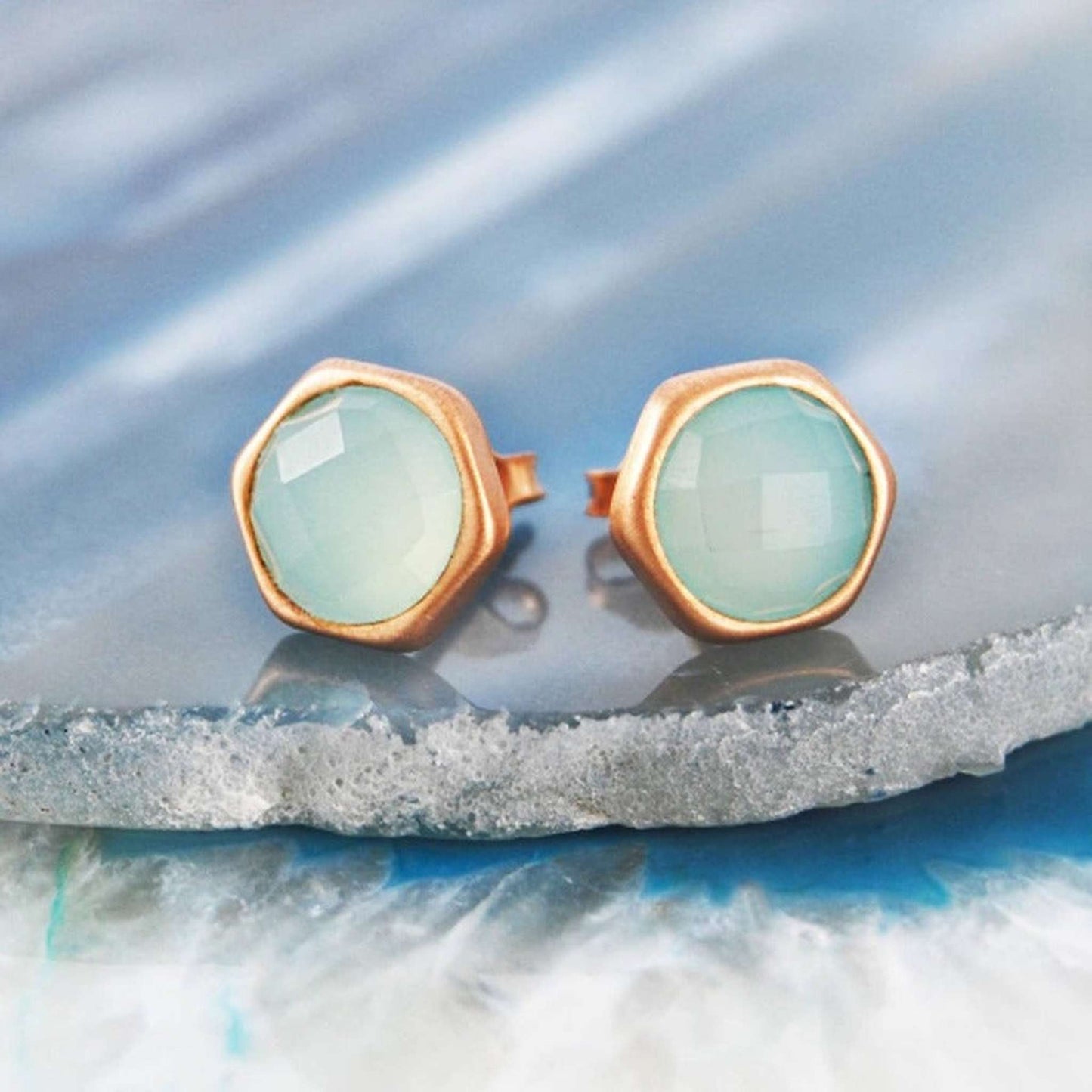 Aqua Chalcedony Round Sterling Silver Stud Earrings