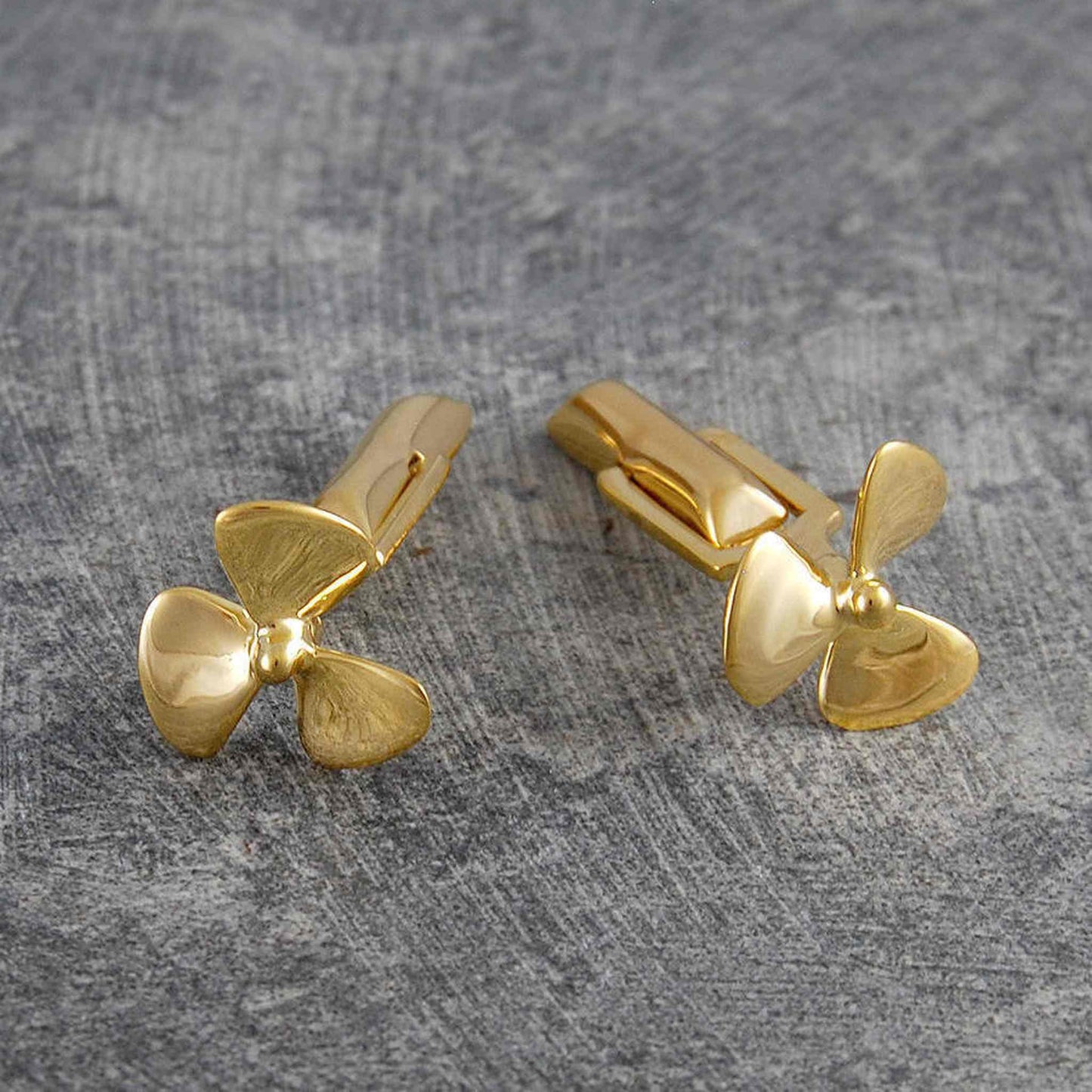 These hand cast Gold Propeller Nautical Cufflinks are a faithful represenation of a motor boat prop and will appeal especially to boaty types! A winning gift for all sailors - both male and female alike.
