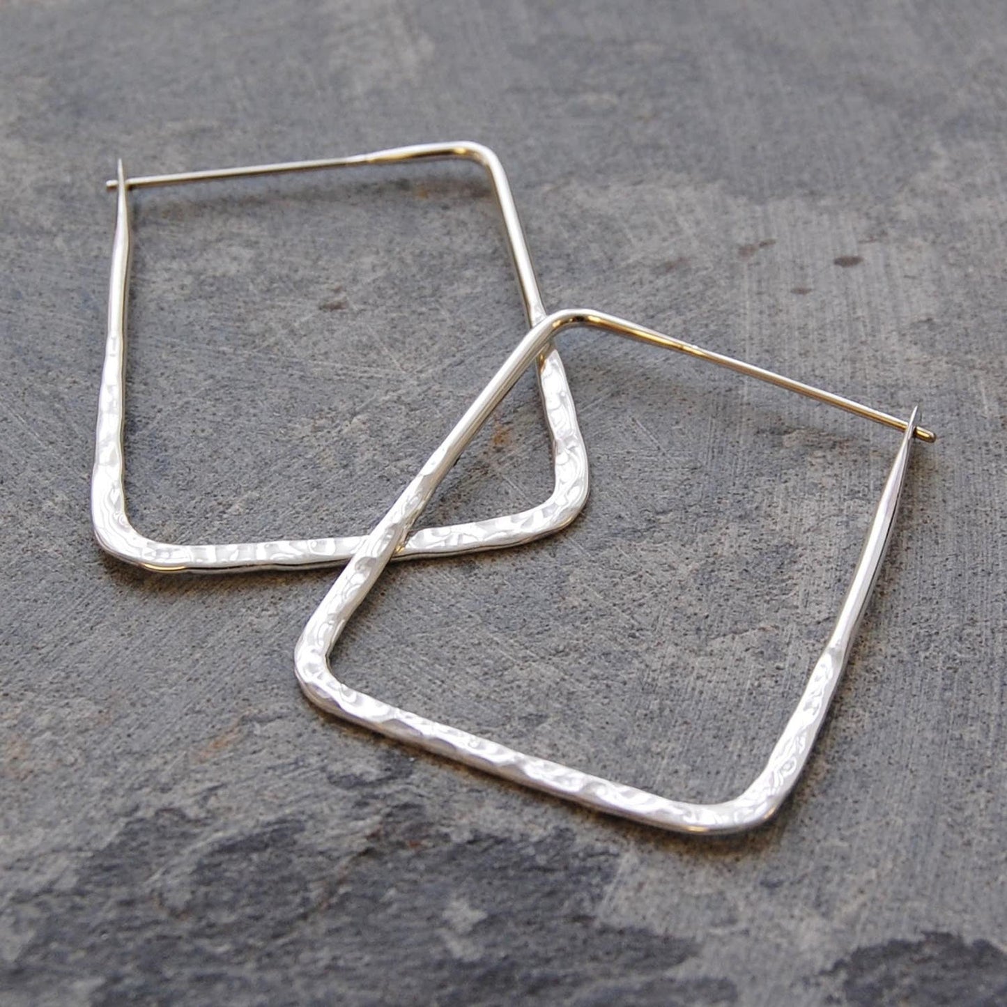 A refreshing and contemporary slant on the classic hoop earring these Hammered Square Geometric Gold Hoop Earrings are slightly hammered to give a glittering, sparkly finish.