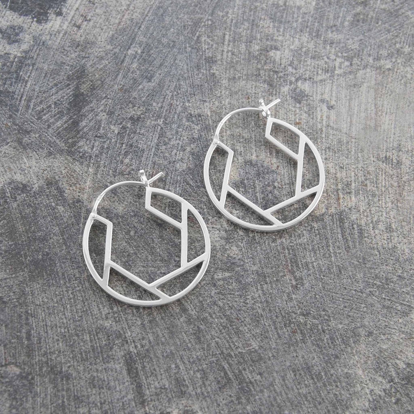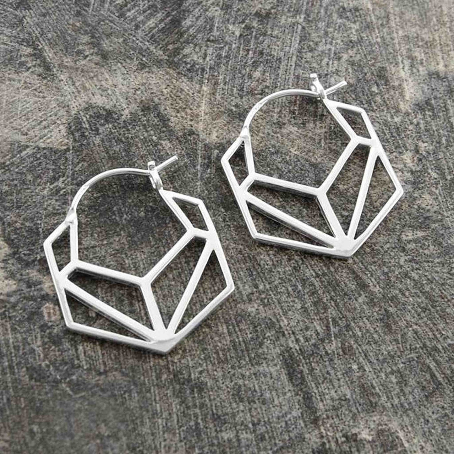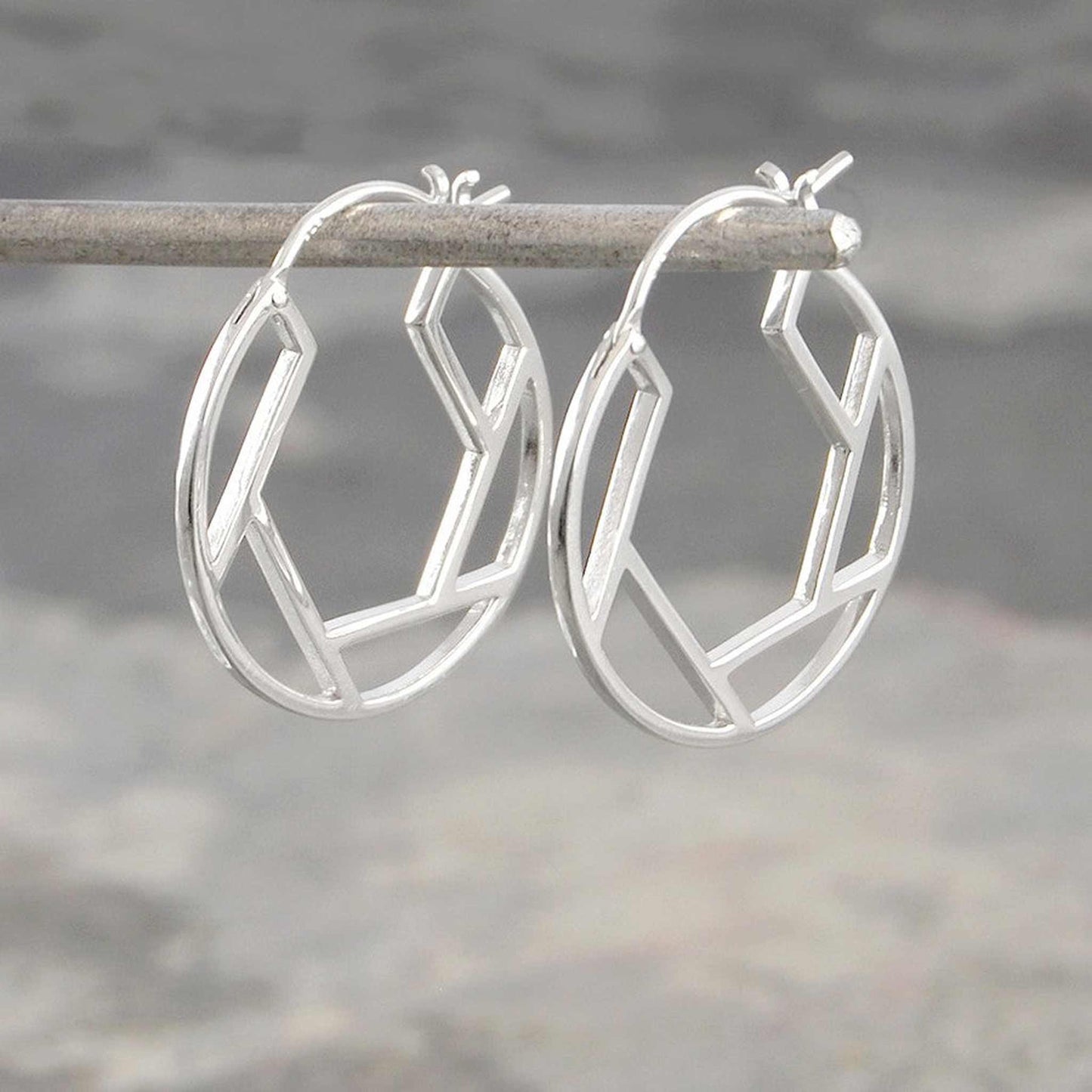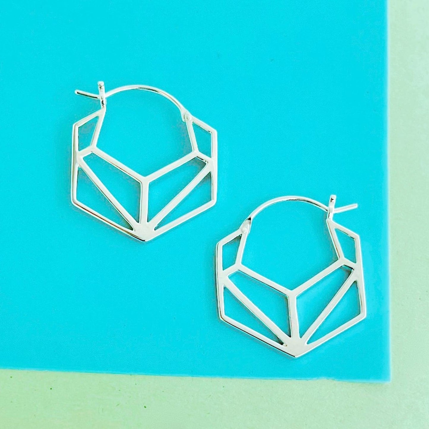 Hexagonal Geometric Sterling Silver Hoop Earrings
