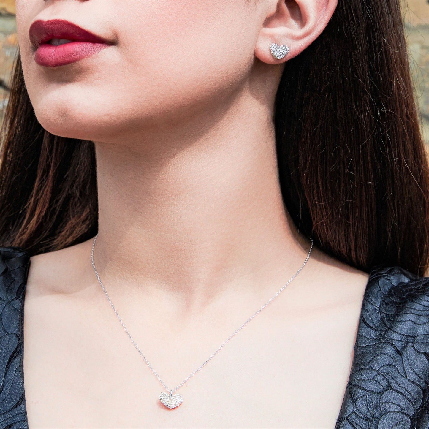 In this range - Mesh Heart Gold Stud Earrings, Mesh Gold Heart Pendant Necklace.