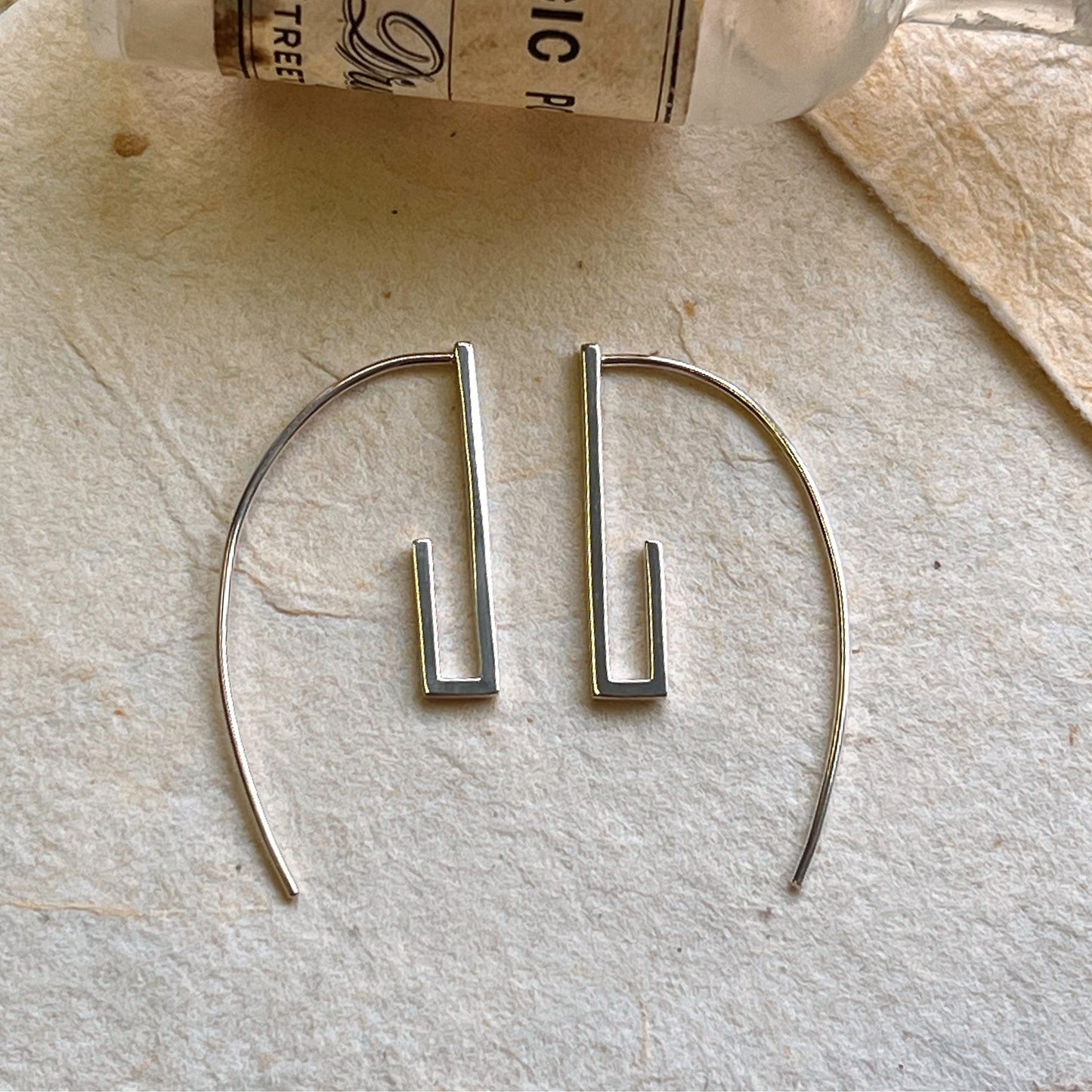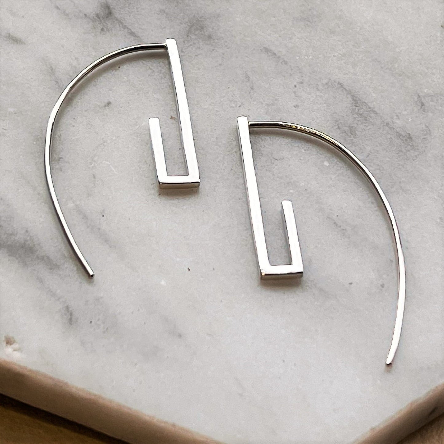 These Gold Geometric Angular Wire Hook Earrings combine fluid curves with clean lines for a look that’s both minimal and striking. Featuring a rectangular drop suspended from a slender arc hook, they create effortless visual balance with a modern edge.