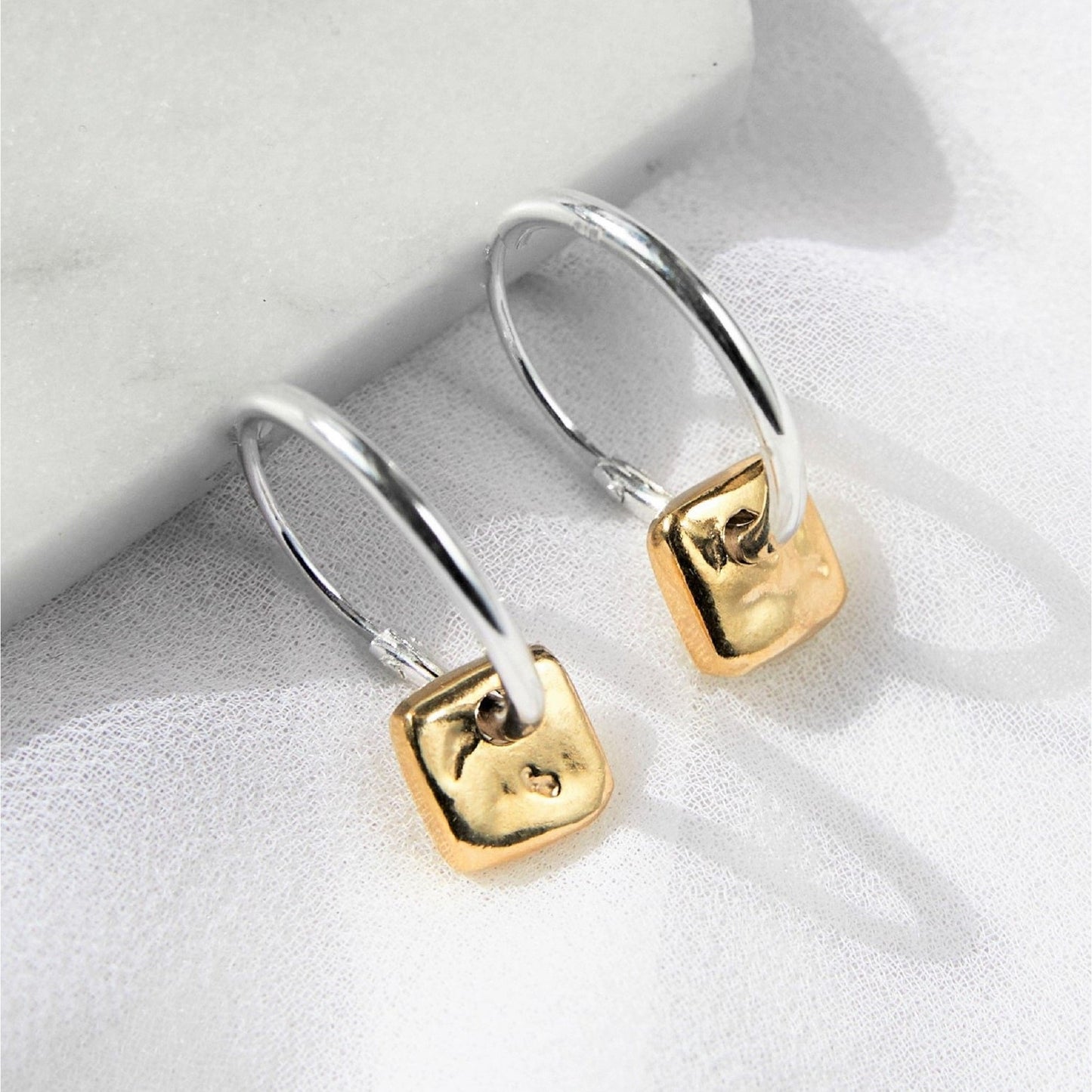 Organic Square Silver Hoop Earrings - Otis Jaxon Silver Jewellery