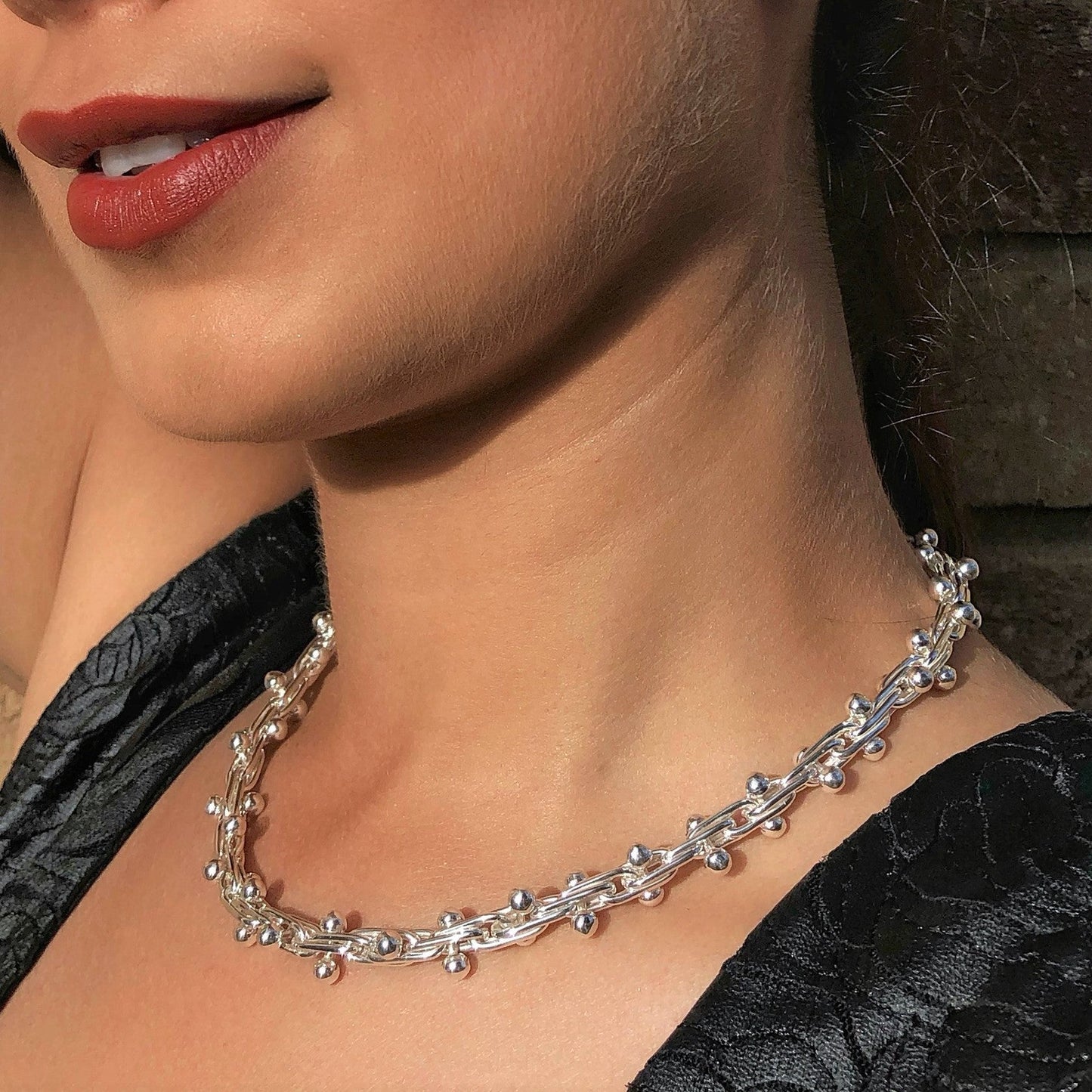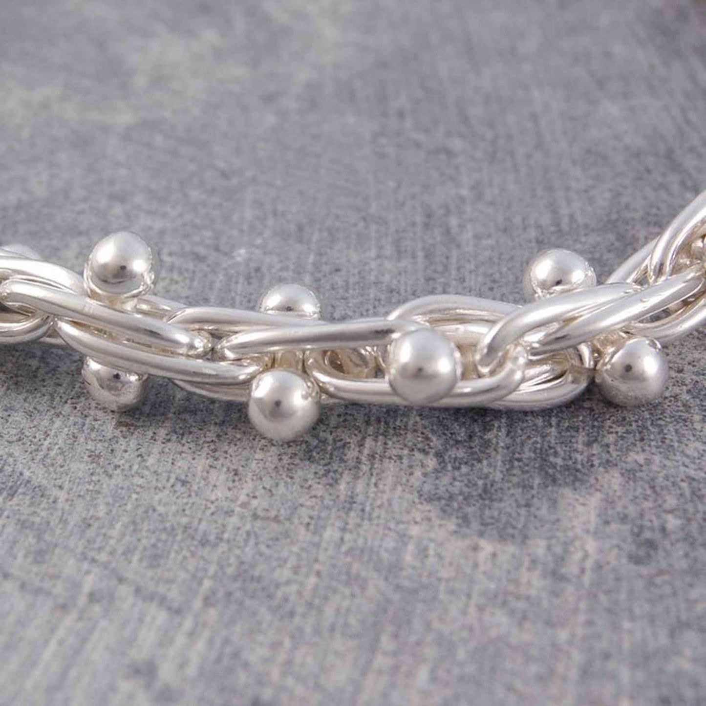 Evoking natural forms, this simple, Peppercorn Chunky Silver Bracelet is an stunning and bold addition to any outfit. Wear this elegant bracelet for all nature of events, day or night.