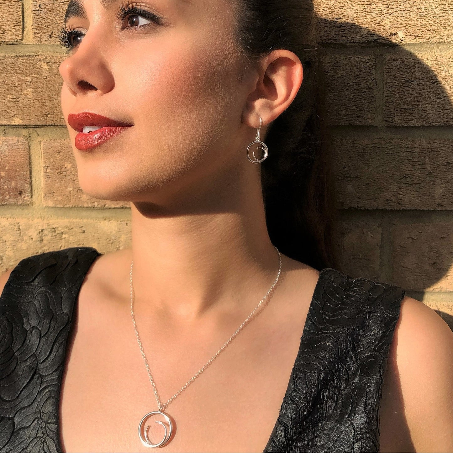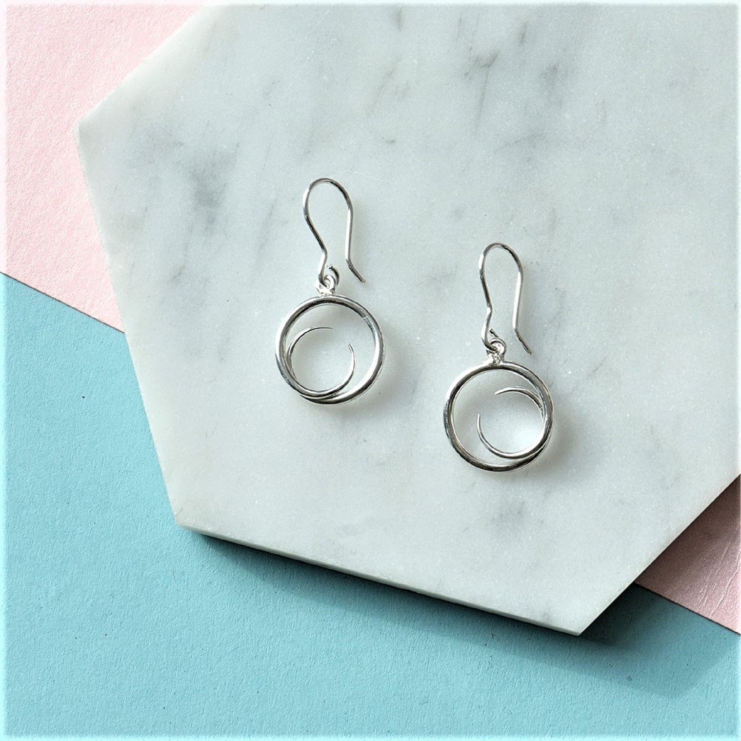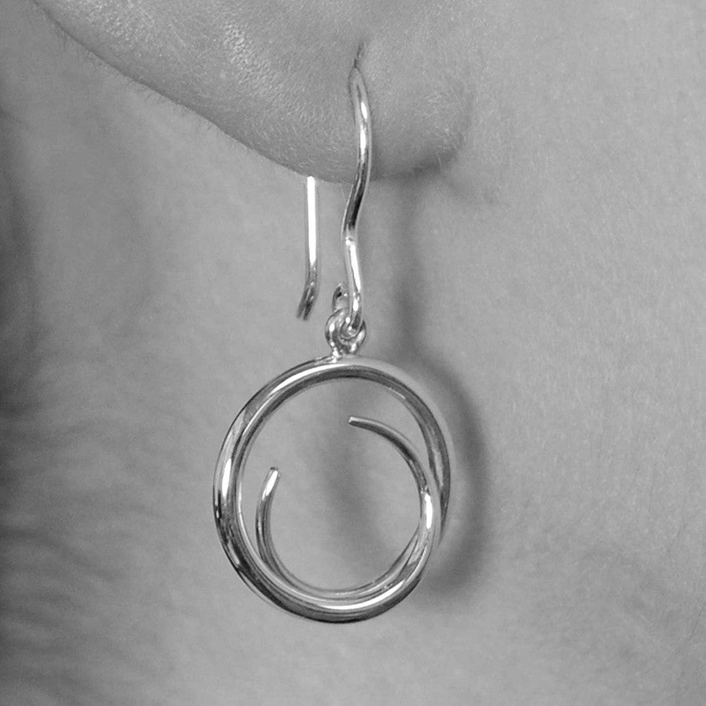 Tapered Round Eclipse Sterling Silver Drop Earrings